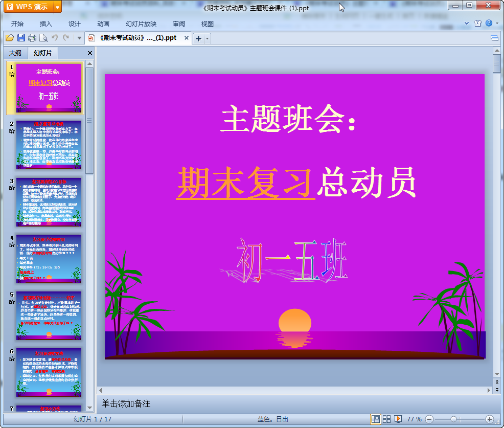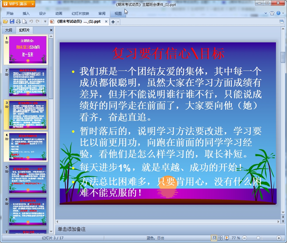 初一主题班会课件(期末考试动员)内容介绍