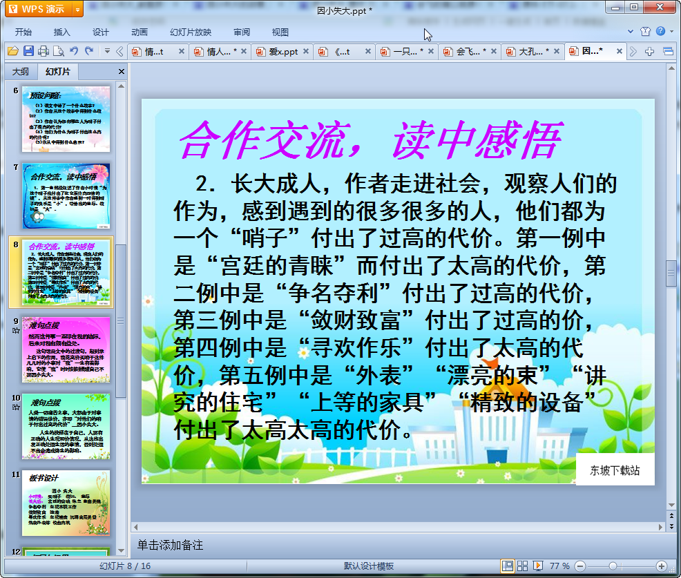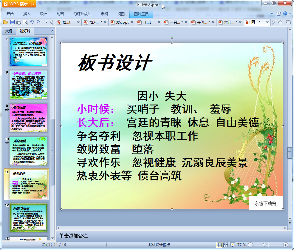 这是一篇十分富有哲理的课文,我们东坡小编特意的整理出这篇因小失大教学课件免费的提供给大家,需要该课件的老师们可以来我们东坡免费的下载这篇共16页的因小失大ppt!