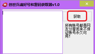 很多人想要获得创世兵魂的好账号,其实完全不必到处找,因为来东坡马上就有创世兵魂好号和密码获取器,这样就一键获取很多能用的好账号使用!有想要玩豪号的赶紧来下载使用吧。