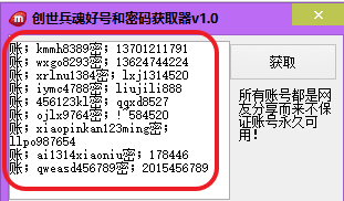 所有账号的原始拥有者所分享,本软件只用于学习交流使用,不得用于其他用途!