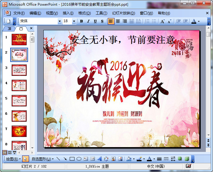 2016到了,学生们都要放假了,大家是不是非常的高兴呢,但是安全无小事,大家要注意假期、节前的安全问题哦!这份2016猴年节前安全教育主题班会ppt,就送给的大家啦!