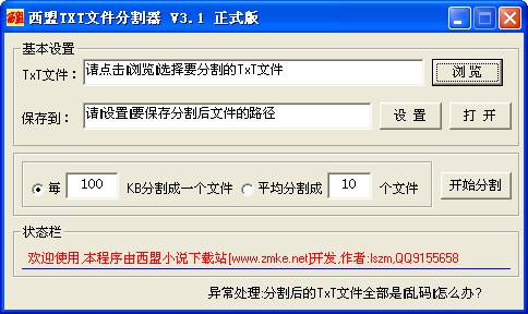 TXT文件分割器是一款功能强大,操作简单,方便好用,安全免费的TXT文件分割工具。可将TXT文件分割成多个小型TXT文件,进行分割,TXT文件分割器可以为TXT小说打包编辑.文件编辑带来极大的方便!若您设置的分割单元数为1000的话,分割出来的TXT文件大约为每个100KB左右!