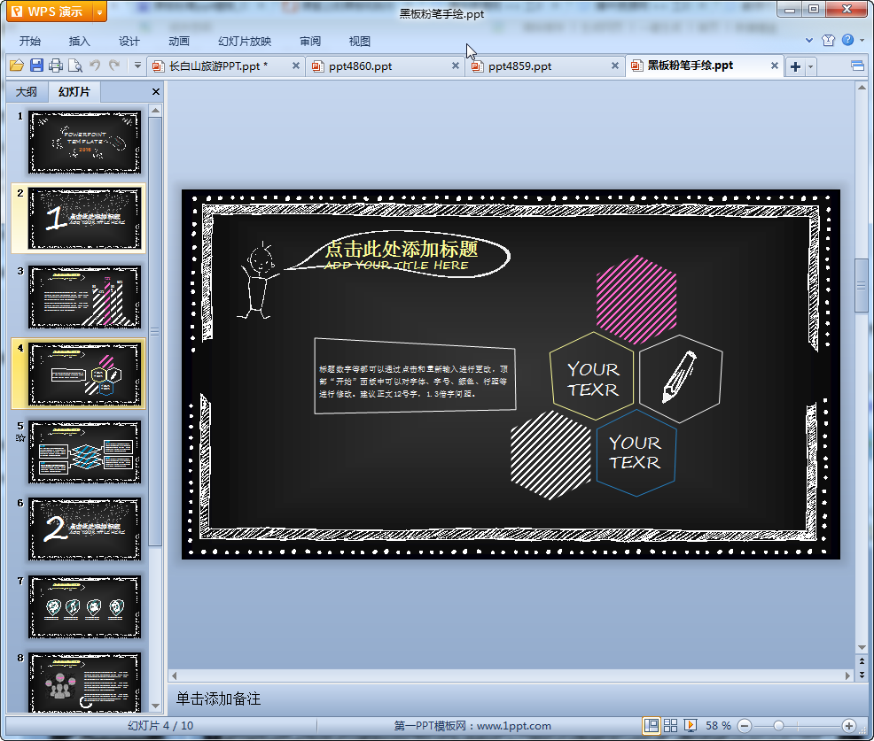 这是我们东坡下载精细整理的一篇精美的黑板粉笔ppt模板,漂亮的黑板粉笔手绘风格,有兴趣的朋友可以来看看,需要的可以直接点击下面的地址免费的下载这篇共10页的黑板粉笔ppt模板!