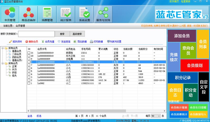 软件名称:蓝芯会员管理系统[集成进销存软件]