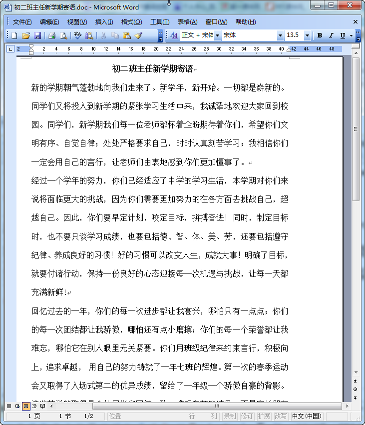 在这个新学期即将来临之际,我们这里有一篇初中班主任新学期寄语范文,不知道是否有老师们需要这样一篇寄语范文,有需要的可以来我们东坡下载进行免费的下载使用!