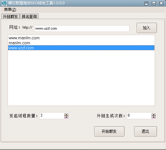 下载打开软件后,可以选择群发外链或者查看你要看的网站排名都可以哦!