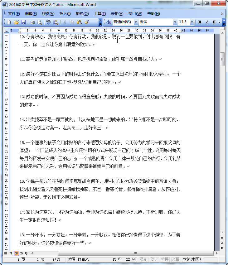 11.高考的竞争是压力和挑战,也是机遇和希望,成功属于战胜自我的人。