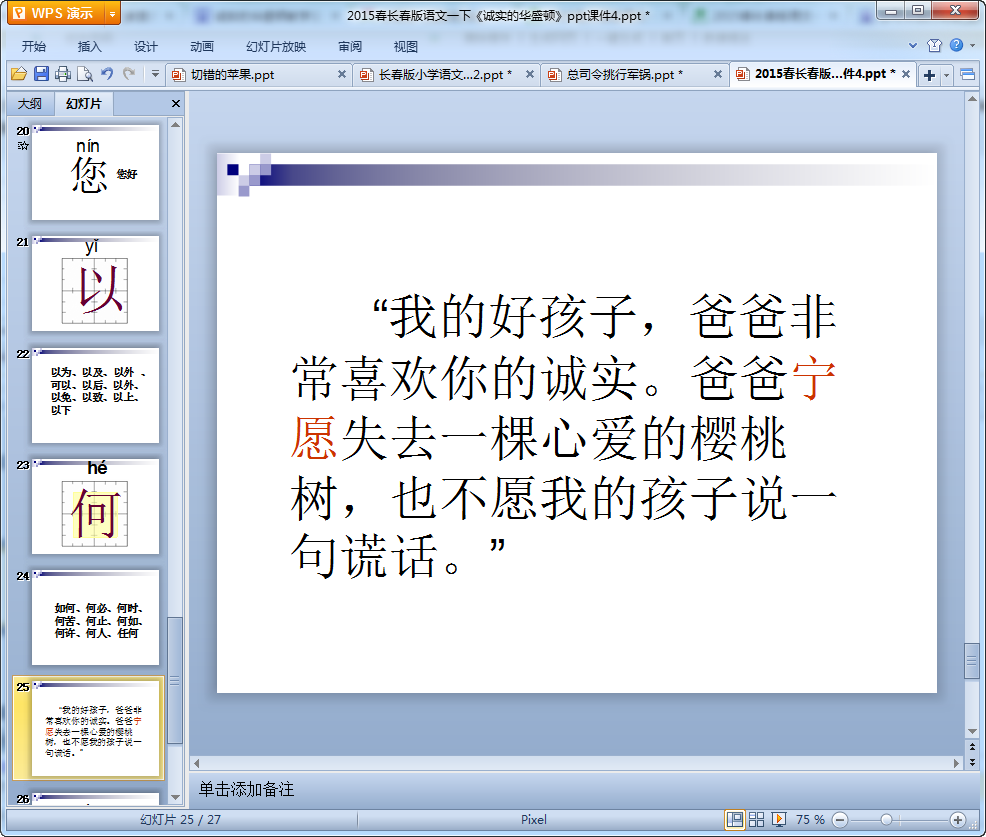 这是我们东坡下载为大家准备的一篇诚实的华盛顿课件,课件制作精美对来比较完美主义的老师们来说这篇精美的ppt课件是大家一能不要错过的。有需要的快来我们东坡免费的下载使用吧!