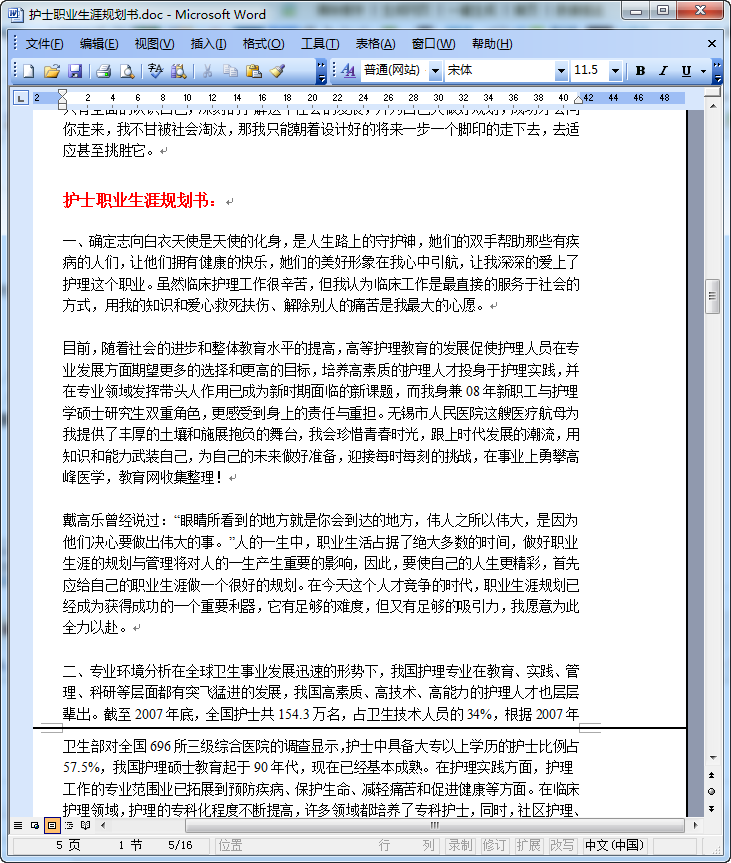 1、自我评估:要更好地做好将来从事的职业,就要更好的了解自身的能力,制定将来要改善和保留的计划。我认为我善于与人沟通,富有同情心,而且注重自身动手能力的培养。我现在还是一名在校就读护理专业的中专生,学校注重的就是实际操作能力的培养,而我也受益良多。我认为我会学到更多的护理知识。但是,我的理论知识欠缺,还需要阅读大量的课外书籍,丰富自身理论知识,以更好的适应市场竞争。