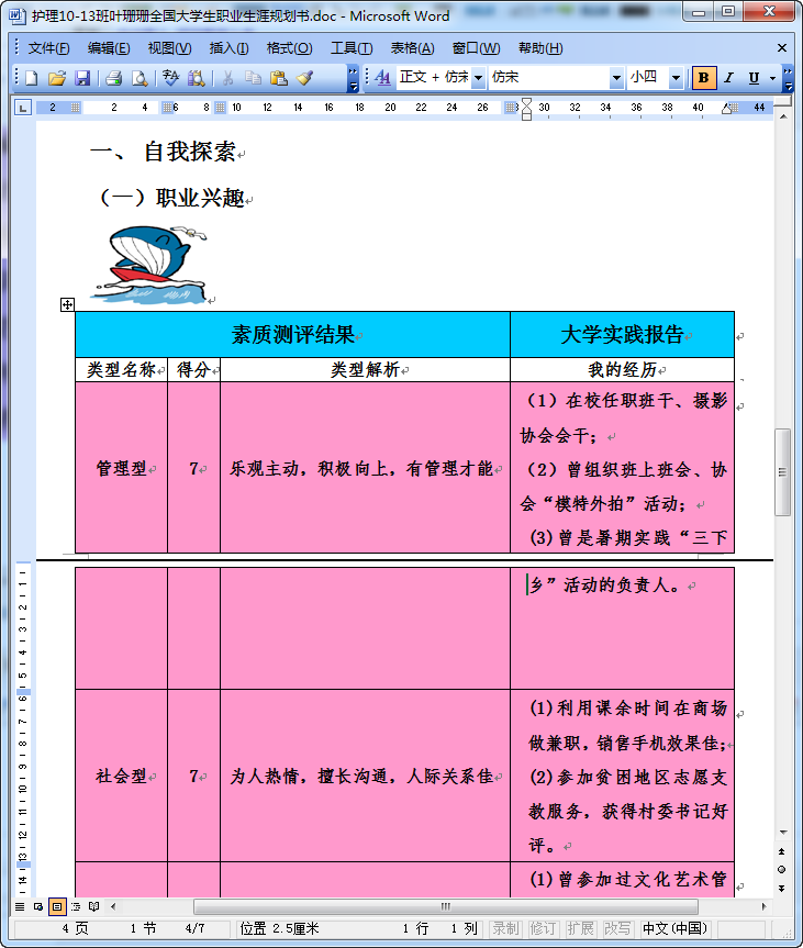 我总结:职业心理学的研究表明,一个人的性格对于其在工作中的表现有着非常重要的影响,本人认为,对自身性格特点进行一下全面剖析,对于我们规划未来的职业生涯是很有必要。