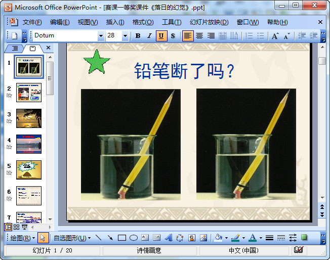 人的幻觉是怎么样子的,我们每天看到的日出日落是不是我们的幻觉呢,一起来看看这份落日的幻觉ppt课件,曾获教师公开课比赛的优质课一等奖哦,非常的精美。了解科学的奥秘。
