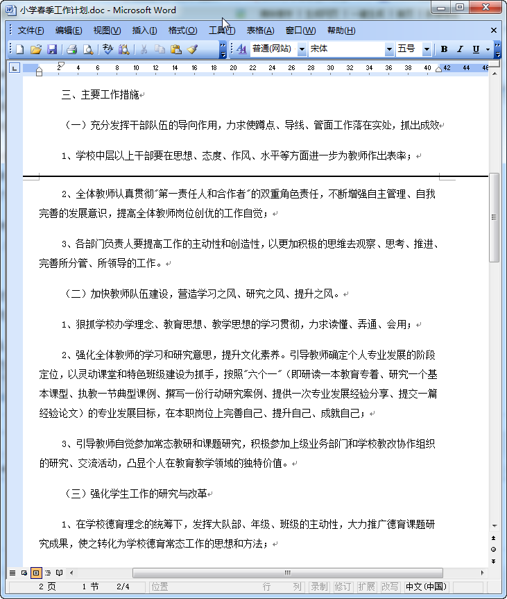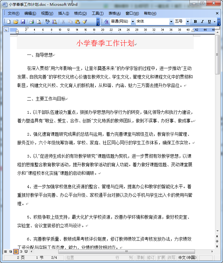 小学春季学校工作计划范文预览