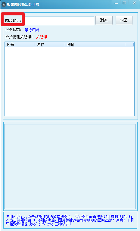 注意:工具只接受后缀是.jpg/.gif/.png 三种格式!