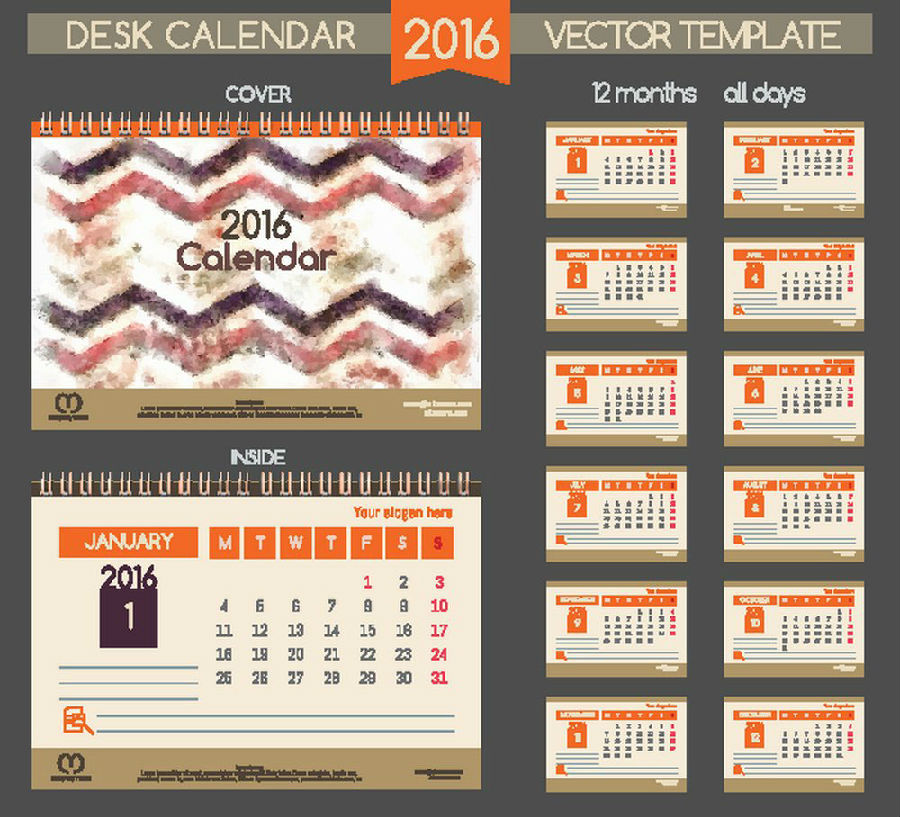 大家在新年里,想不想要一些精美的台历放在自己的桌子上呢,这里有一份全新的2016新年台历矢量模板,非常的精美,让你看到它就觉得赏心悦目哦!