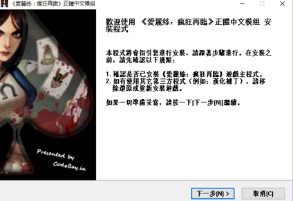 爱丽丝疯狂回归中文汉化补丁使用说明