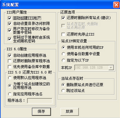 1、应用程序池支持,这个主要是IIS 6.0中新功能,现在对于IIS 5.0 到IIS 6.0还原时会主动按配置属性进行创建应用程序池;