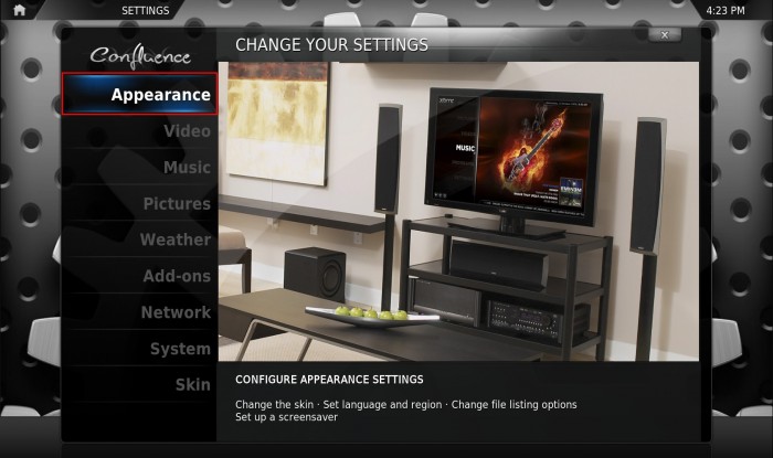 1)第一次进入kodi是英文版的,需要做如下操作进入中文界面,进入system->appearance
