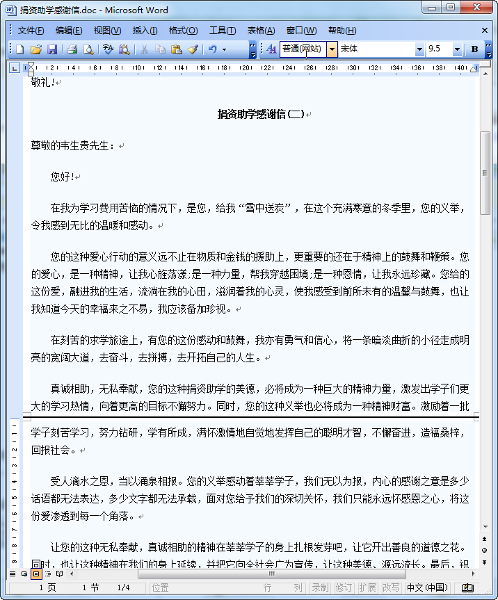 在我为学习费用苦恼的情况下,是您,给我“雪中送炭”,在这个充满寒意的冬季里,您的义举,令我感到无比的温暖和感动。
