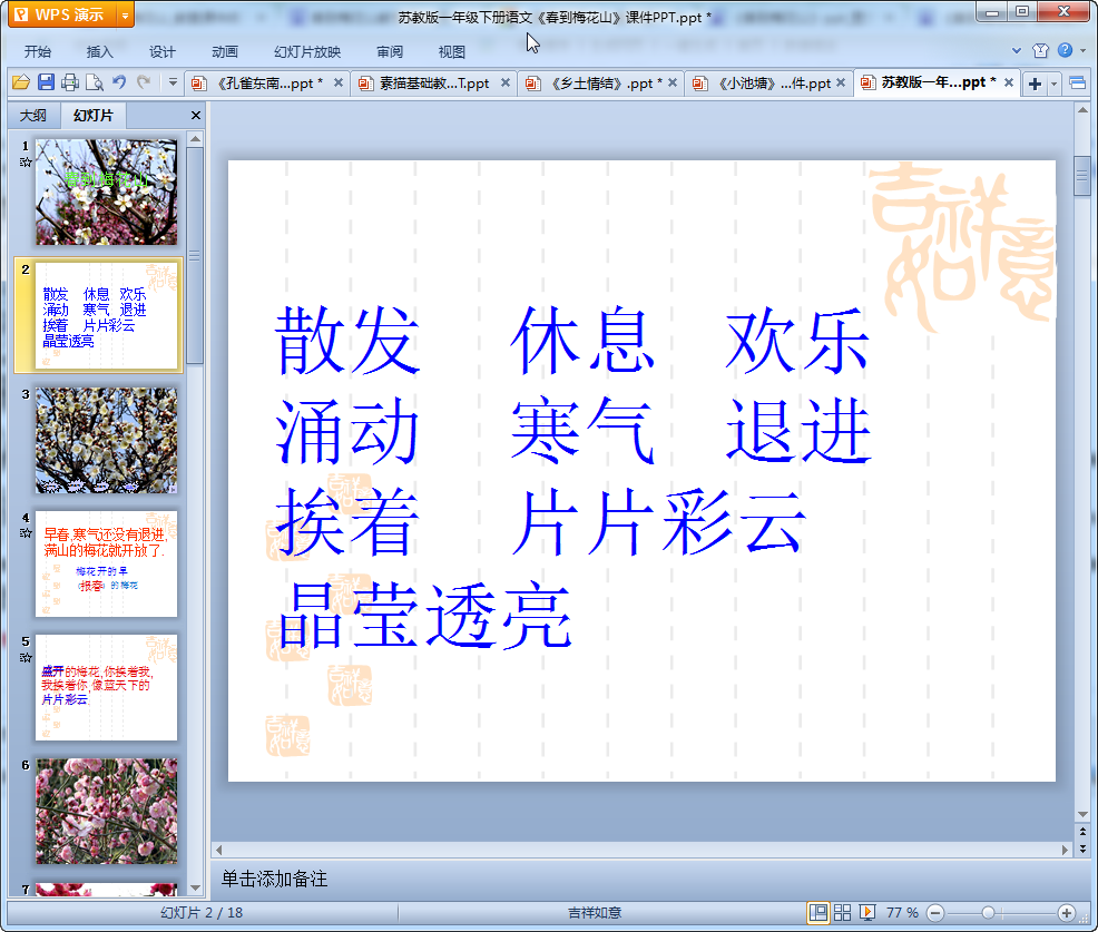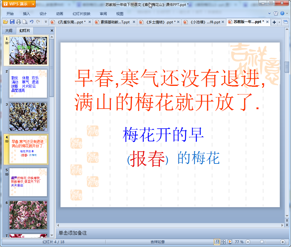过渡:春姐姐还带来许多漂亮的梅花图片,谁学得好,读得好,就奖励给他,(出示图片)漂亮吗?那就加油吧!