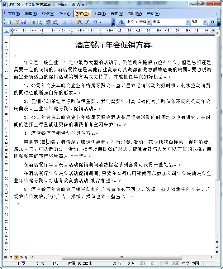 酒店餐厅年终促销方案策划内容摘要
