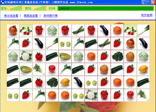 《果蔬连连看》比《麻将连连看》麻烦一些,主要是很多果蔬外观很像,时间消耗也比较快,所以比较难过关。如下经验供大家参考:
