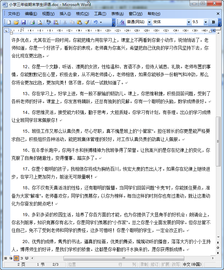 这是我们东坡下载为大家准备的一篇小学期末学生评语范文大全没内容比较丰富,在寒假来临之际,有需要该小学学生评语大全的老师们可以来我们这里免费的下载这篇三年级期末学生评语大全!