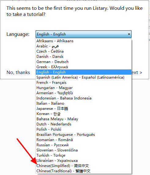 然后会提示你选择语言,拉到最下方后会有简体中文的选项
