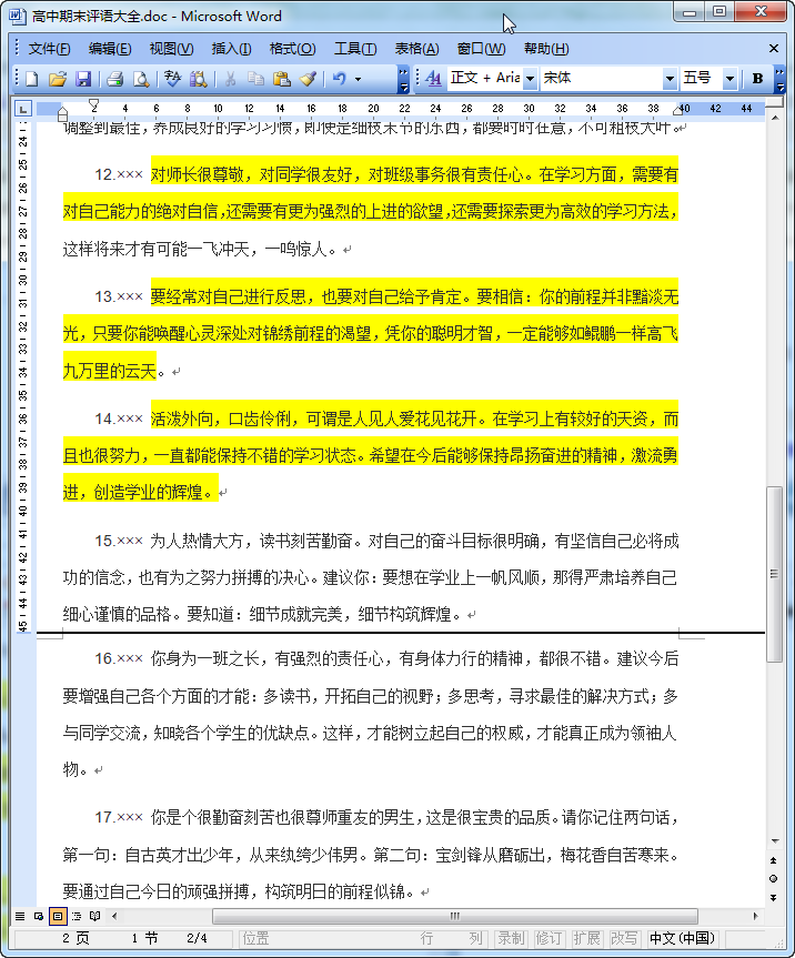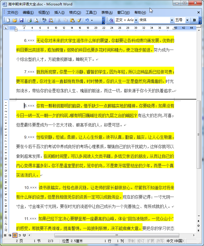 高中生期末评语大全内容介绍