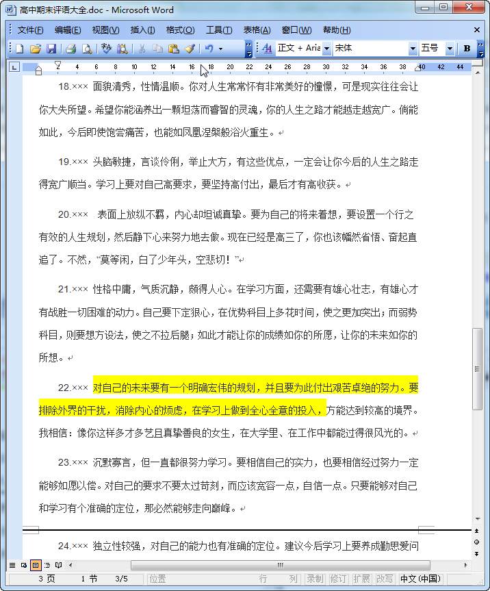 高中生期末评语大全预览