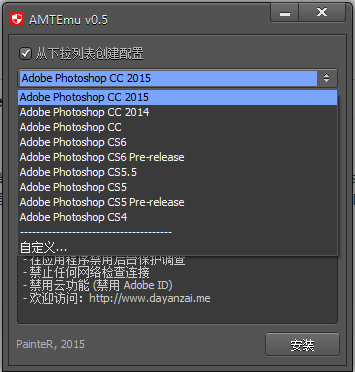 AMTEmu可用于注册激活PS CS到CC系列的所有产品,当然,同系列的Adobe其他软件也是可以正常注册激活,前提是要同系列。例如你从软件中选择PhotoShop CC 2015的就不能激活Dreamweaver CS6。欢迎有需要的朋友下载体验!