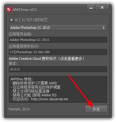 下载解压后可以直接运行AMTEmu,如图:支持破解激活从CS4到CC 2015全系列产品