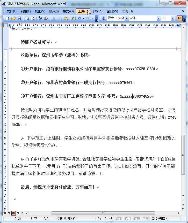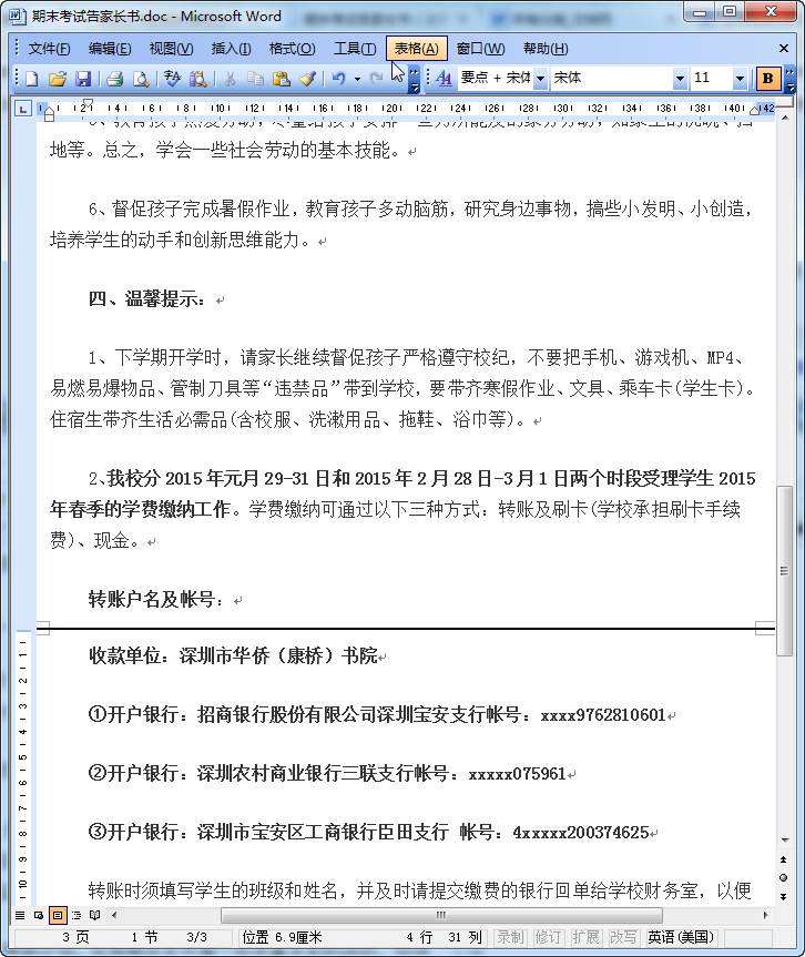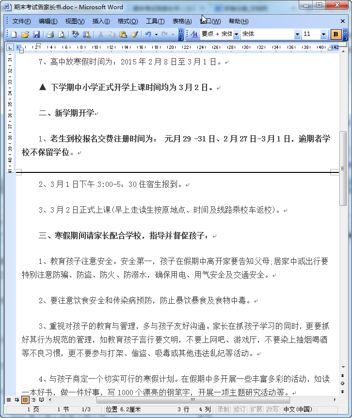 告家长书是放假等各种情况下老师将一些具体的需要注意的事件对家长说明的文件