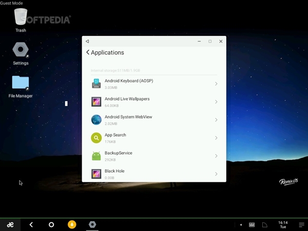 Remix OS 2.0 拥有更加易用的任务栏,并将其放在了本应该存在的位置上。你可以直接通过点击图标的方式进行应用切换,从而真正远离那个令人困扰的任务列表。