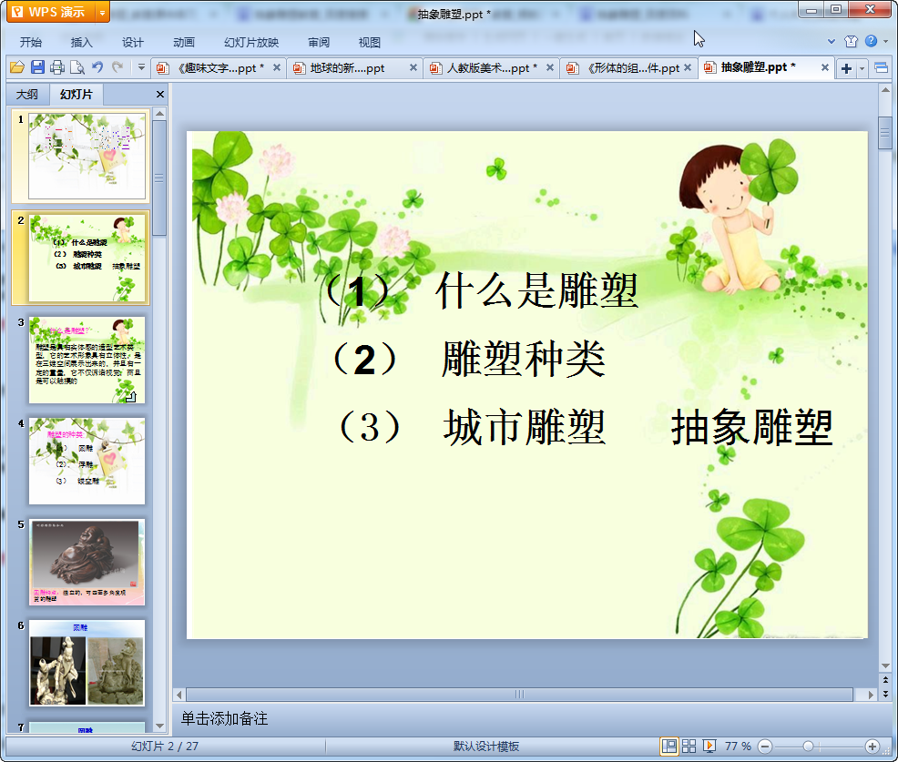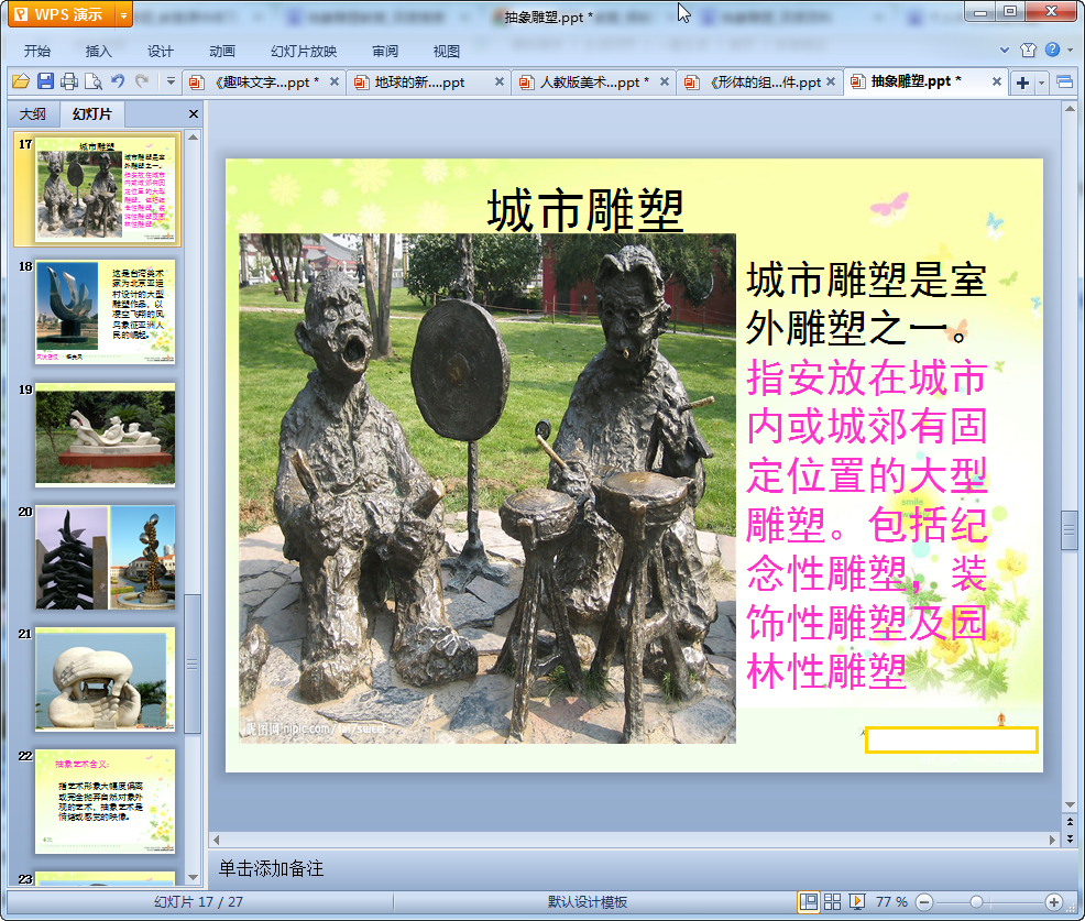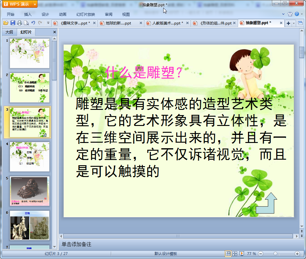 我们东坡下载为大家带来的这篇抽象雕塑教学课件,精美的内容制作加上完整的知识讲解深受老师学生们的喜欢,有需要这篇小学美术课件的朋友们可以来这里免费的下载使用!