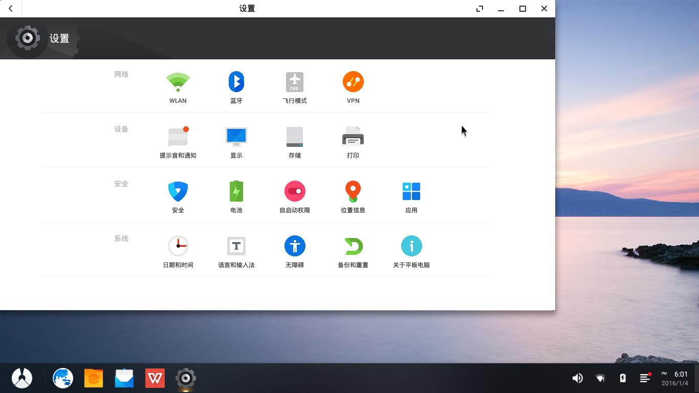 系统设置同样是兼具了Windows 10和Android特色。可以看到系统版本比较新,使用的是Android 5.1.1,比起一些万年4.4的国产Android MOD好得多。