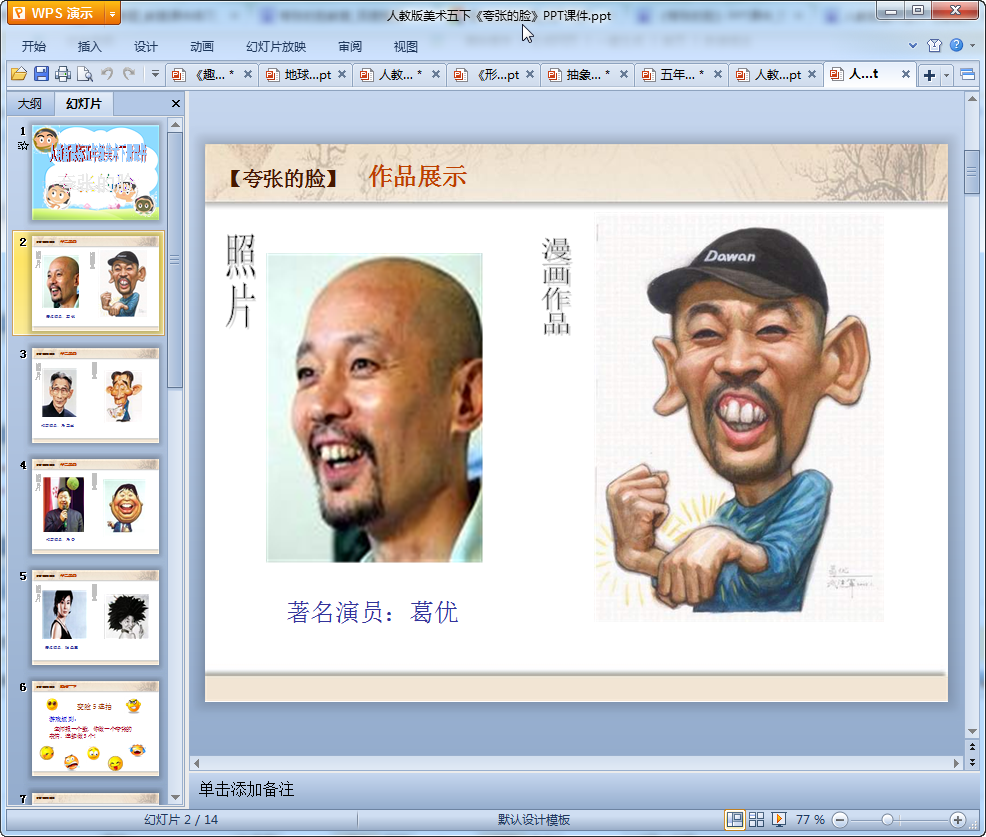 这是一篇精美的夸张的脸教学课件,课件共有14页,内容制作精美大量的配图深受学生们的喜欢,有兴趣的老师们可以来看看,需要可以来我们东坡免费的下载这篇夸张的脸ppt!
