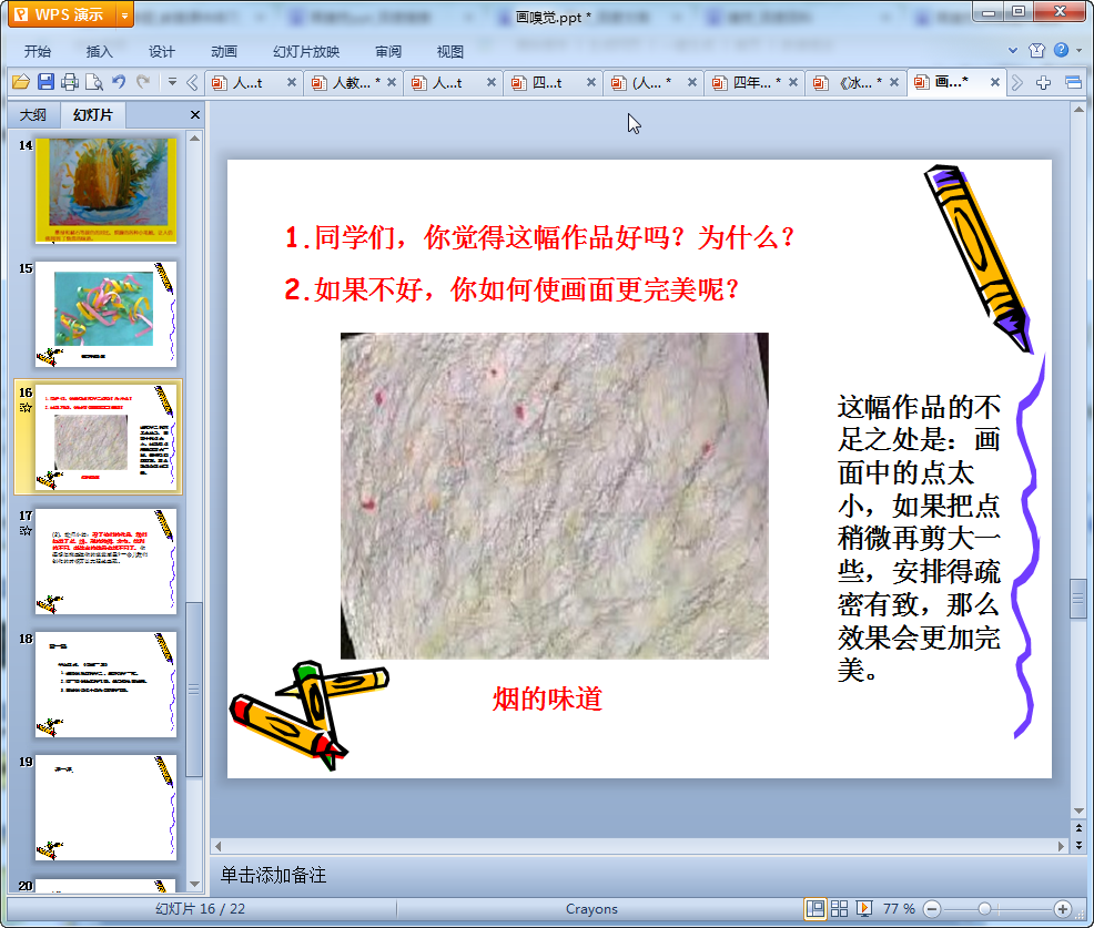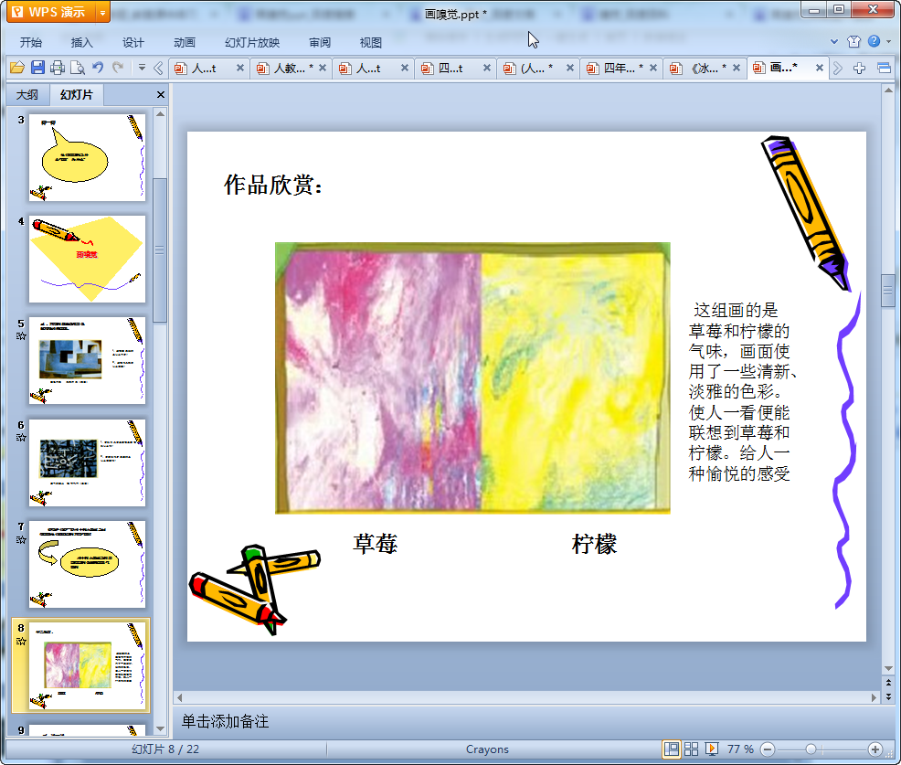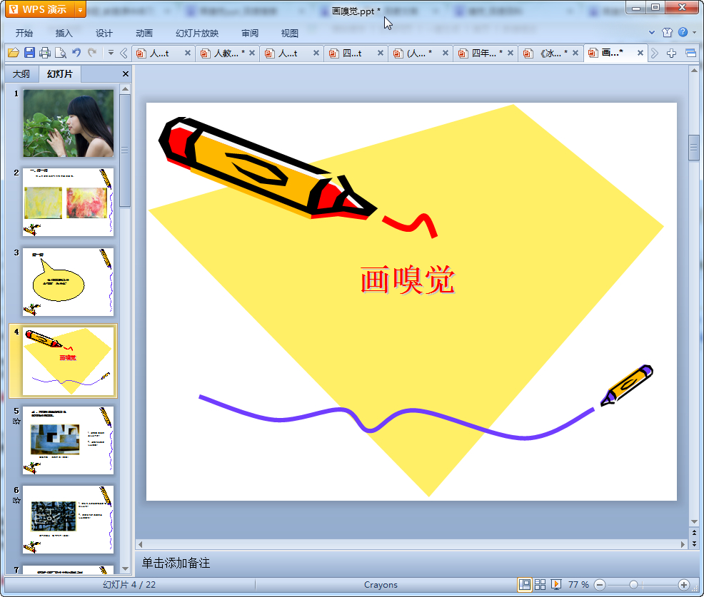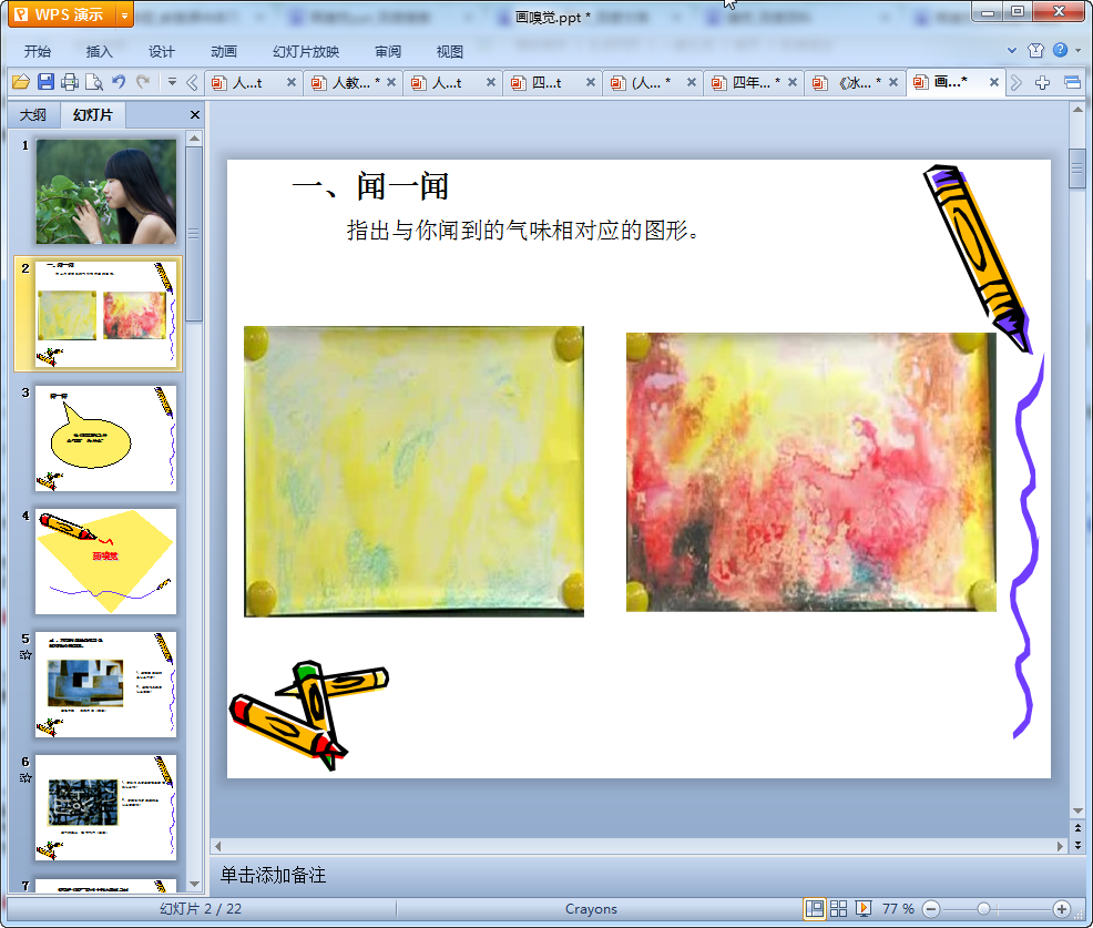 这里我们东坡小编为各位美术老师们提前的准备了这篇画嗅觉教学课件,对于喜欢提前备好课的老师们来说,你们完全可以关注我们东坡下载站,海量的教学课件等你们下载使用!