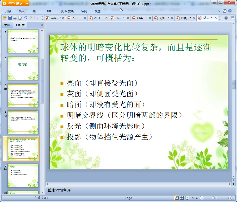 这是我们东坡下载为各位广大的美术老师们准备的一篇明与暗教学课件,课件共有19页内容比较丰富,有需要该课件的老师们可以来我们东坡免费的下载使用!
