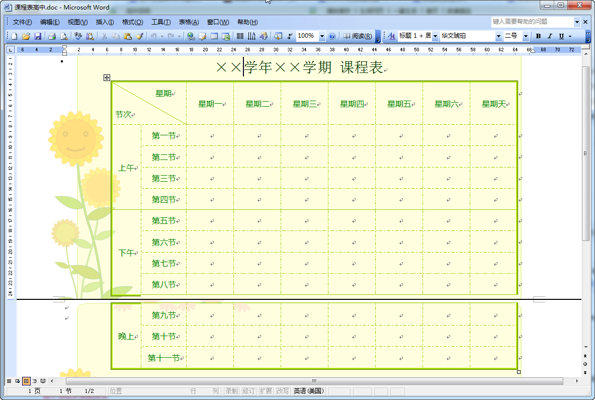 学期马上就要结束了,在新学期来临之际各位广大的同学们是否要准备新的课程表了,这里给大家带来的是一篇高中课程表模板,相比上次个大家带来的模板,这次给大家添加了晚自习模板更加的适合高中生使用,精美的制作风格也是大家喜欢的,有兴趣的可以来我们东坡免费的下载使用!