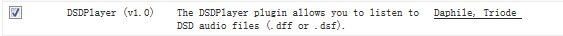 可以看到DSD插件是Daphile提供的。之前一直无法选择上此插件,搞到无解。最近BBC插件也无法选择了,才明白,是国家封锁原因造成的。唉,只能搞得像做贼一样去。没经验,试试这个,试试那个,某一次还被网络警告了,真是无语。还好,最终用方法成功选中DSDPlayer (v1.0)插件,包括被封锁的BBC也选中了。选好(看到对勾)后,以后无需连接也可以正常使用。