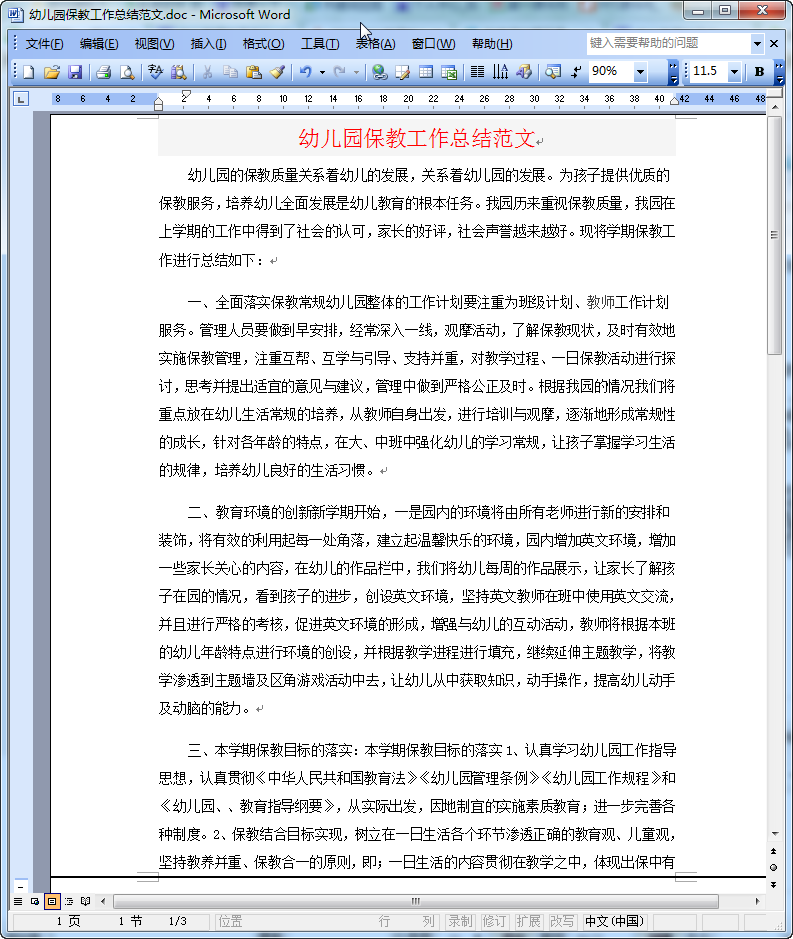 幼儿园的保教质量关系着幼儿的发展,关系着幼儿园的发展。为孩子提供优质的保教服务,培养幼儿全面发展是幼儿教育的根本任务。我园历来重视保教质量,我园在上学期的工作中得到了社会的认可,家长的好评,社会声誉越来越好。现将学期保教工作进行总结如下: