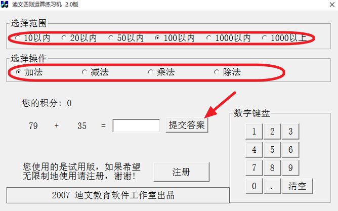 迪文四则运算练习软件怎么用