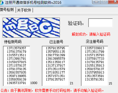 当你想要批量查询很多微信号绑定的手机号码时,最需要的就是注册开通微信手机号检测软件,通过它手动打码,就能快速筛选开通微信的手机号码!