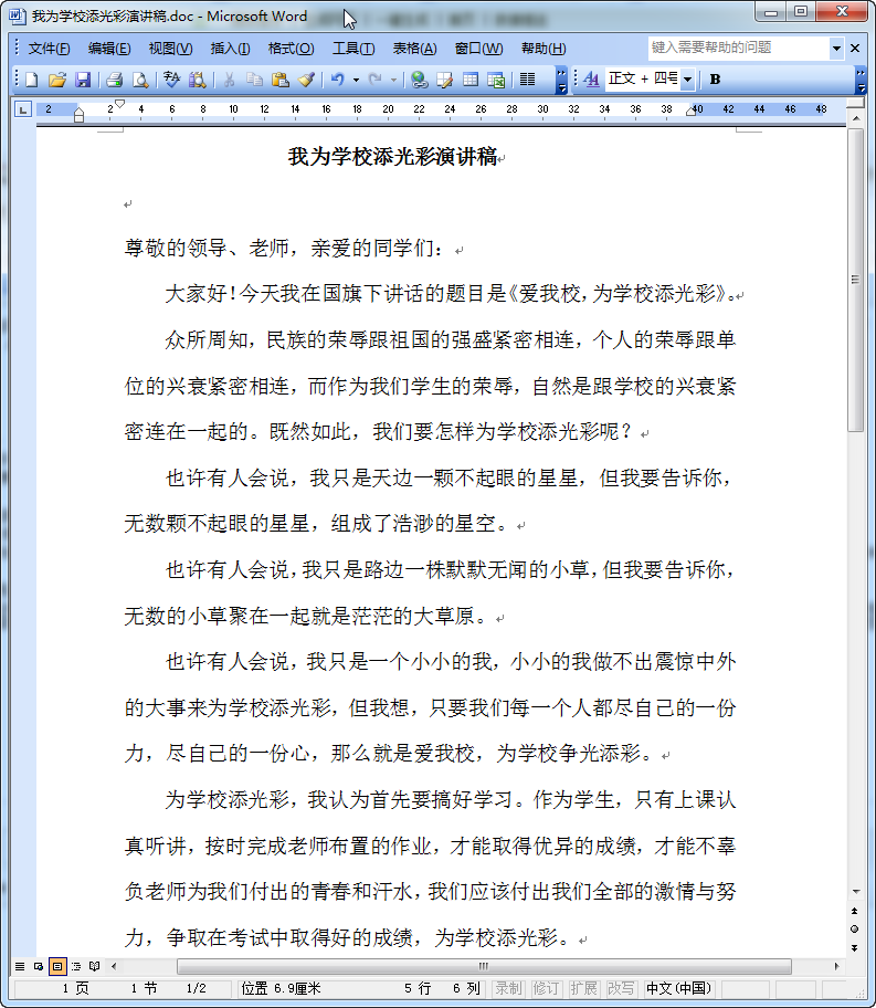 也许有人会说,我只是一个小小的我,小小的我做不出震惊中外的大事来为学校添光彩,但我想,只要我们每一个人都尽自己的一份力,尽自己的一份心,那么就是爱我校,为学校争光添彩。