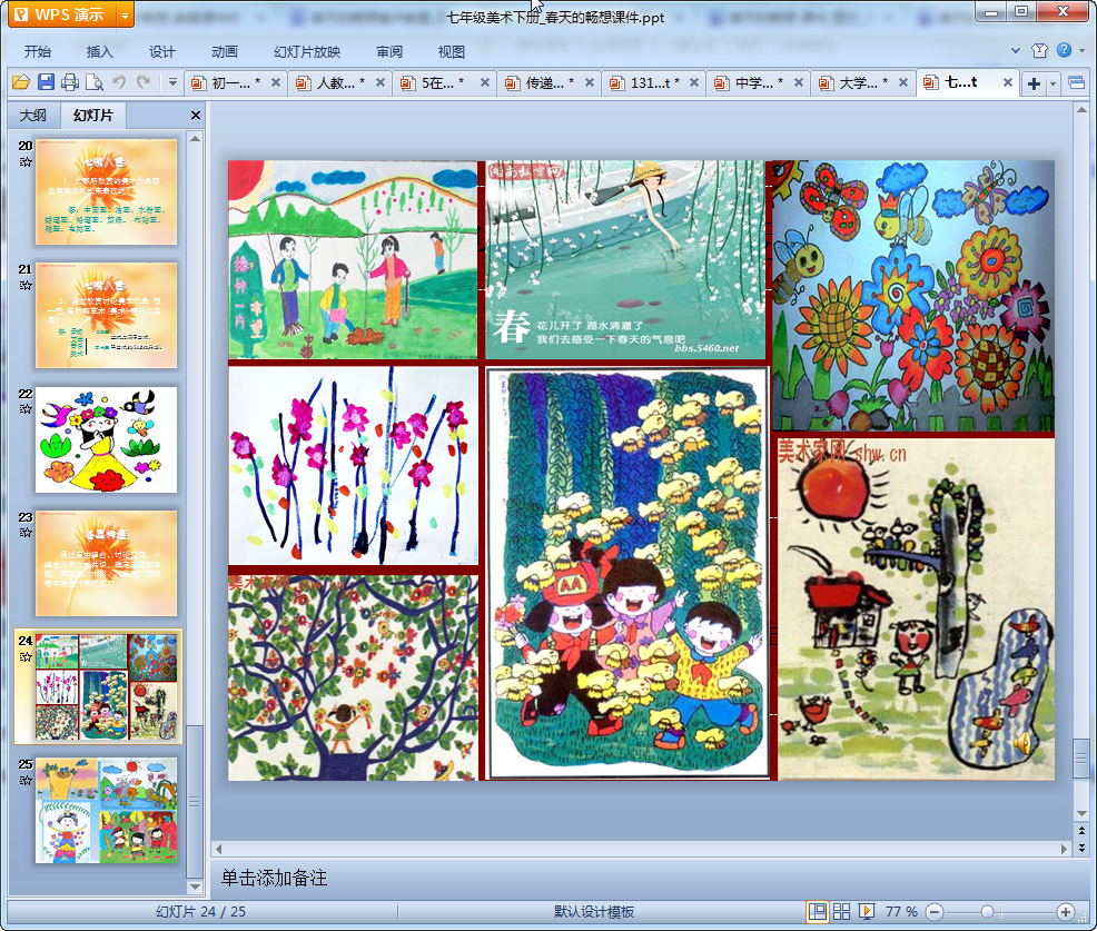 这里是我们东坡下载为各位美术老师们准备的一篇新学期即将需要的春天的畅想教学课件,课件制作精美共有25页,有需要提前准备教学课件的老师们可以来我们东坡免费的下载这篇春天的畅想ppt使用!