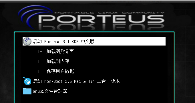porteus linux3.1开机界面(EFI启动方式的界面):