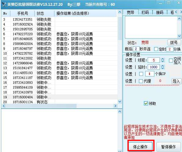 这个大家也看到,其中会看到领取失败的,这些都是前面领取了,每个号码只能领取一次
