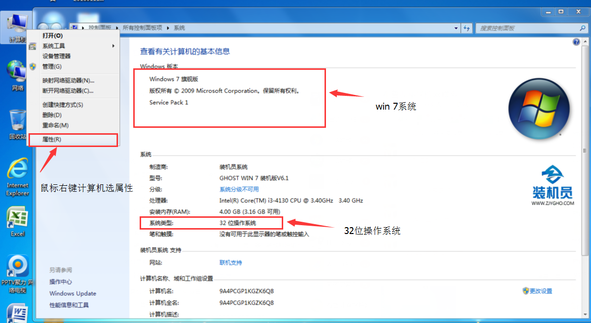 4、接下来配置补丁信息,配置补丁信息要前请仔细核对程序、系统、补丁文件版本是否统一,小编的是win7 32位的系统,查程序、系统版本方法,直接在计算机右键属性就可以看到,如下图所示;