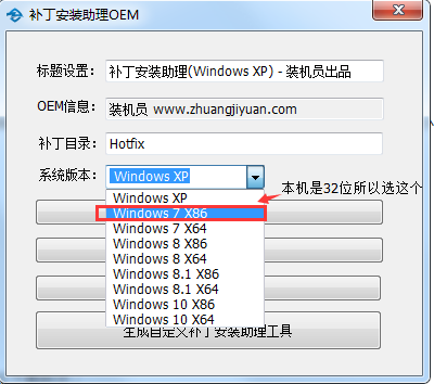 5、知道自己电脑的系统版本就可以配置补丁信息了,如下图所示;
