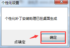 10、点击生成自定义补丁安装助理工具会提示个性化补丁安装助理已在桌面生成,如下图所示;